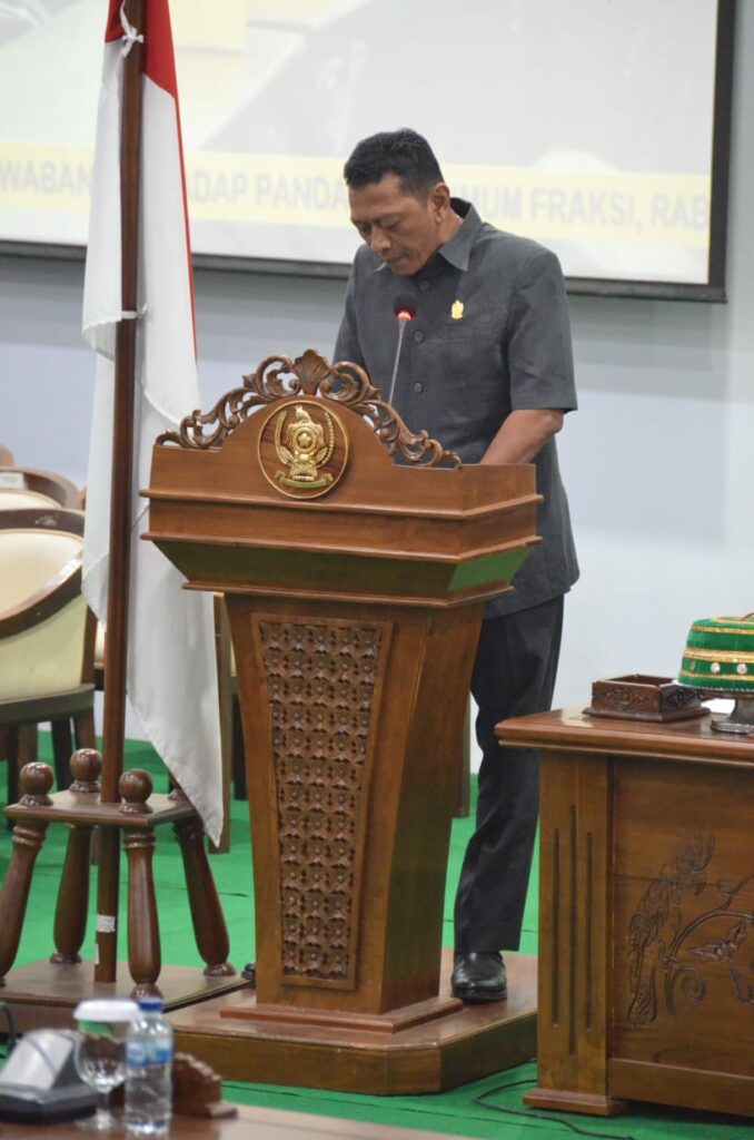 Fraksi Gerindra dengan Juru Bicara Andi Samsu Rijal, SE menyampaikan bahwa APBD Tahun Anggaran 2020 menganut Anggaran Defisit maka perlu adanya penyesuaian langkah yang ditempuh dengan mempertimbangkan kewajaran pelaksanaannya baik dari segi aturan, efisiensi maupun efektifitasnya.