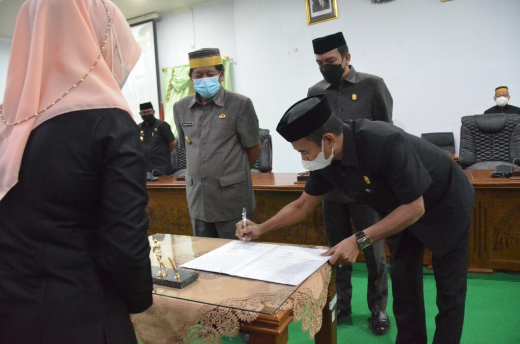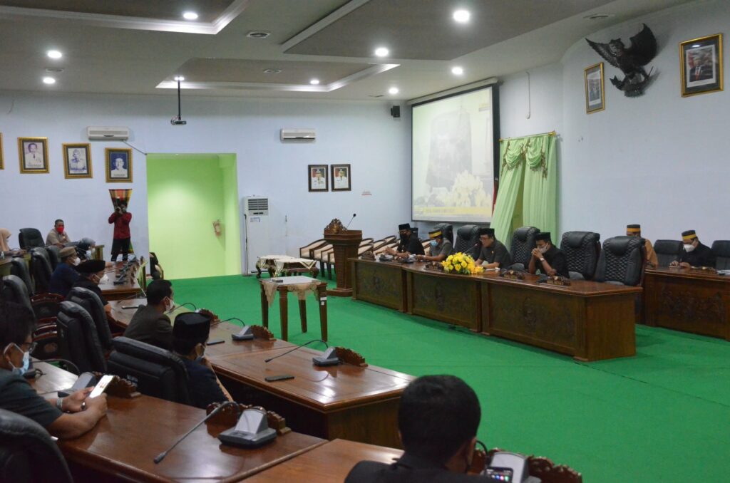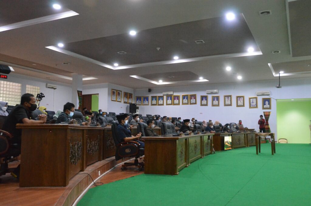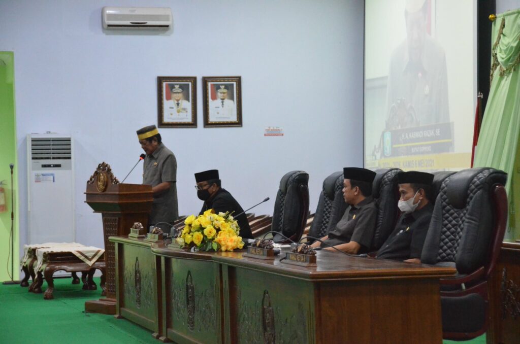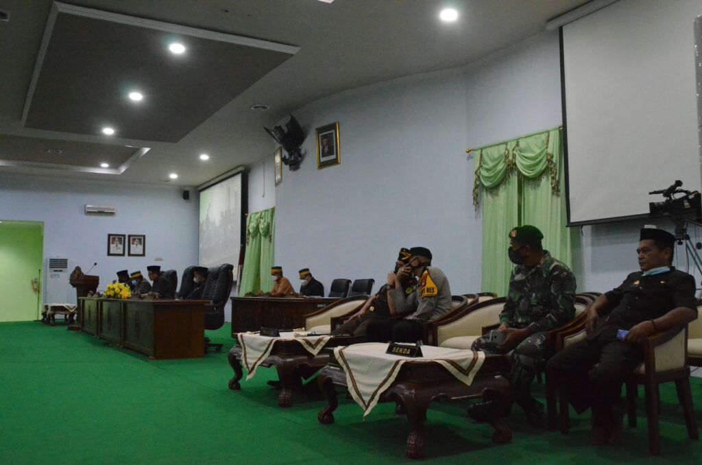 Ketua DPRD Kabupaten Soppeng, H. Syahruddin M. Adam, S.Sos., M.M membuka Rapat Paripurna pada Kamis (06/05/21) dengan agenda Penandatanganan Nota Kesepakatan Rancangan Awal RPJMD Kabupaten Soppeng Tahun 2021-2026 yang didampingi oleh Wakil Ketua, H. Riswan, S. Sos.