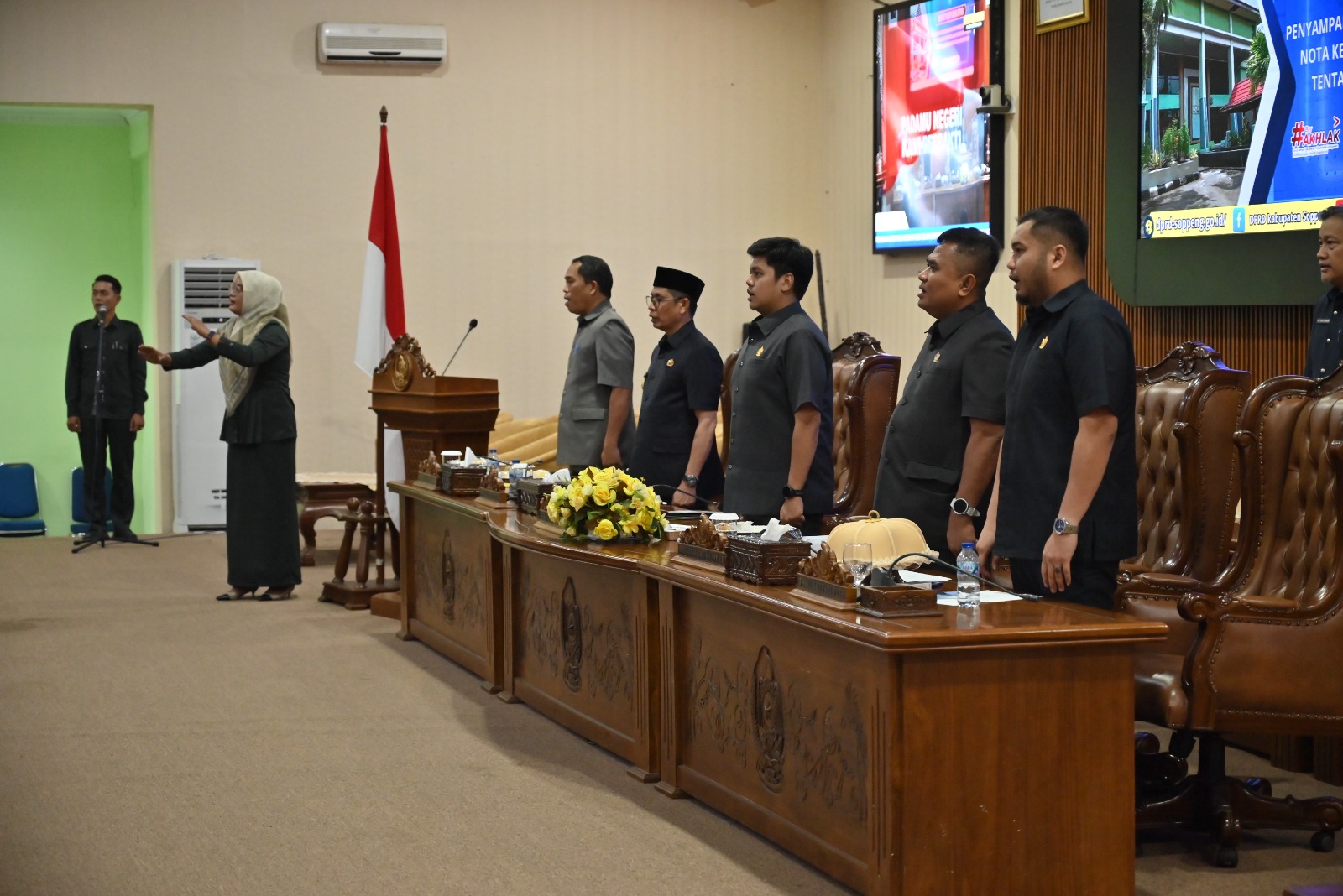 “Segala masukan dari fraksi-fraksi DPRD akan menjadi perhatian serius bagi Pemerintah Daerah untuk ditindaklanjuti. Prinsip kami adalah efisiensi tanpa mengurangi manfaat, sehingga setiap rupiah anggaran benar-benar menghadirkan nilai tambah bagi masyarakat,” ujar Wakil Bupati saat membacakan jawaban Bupati.
