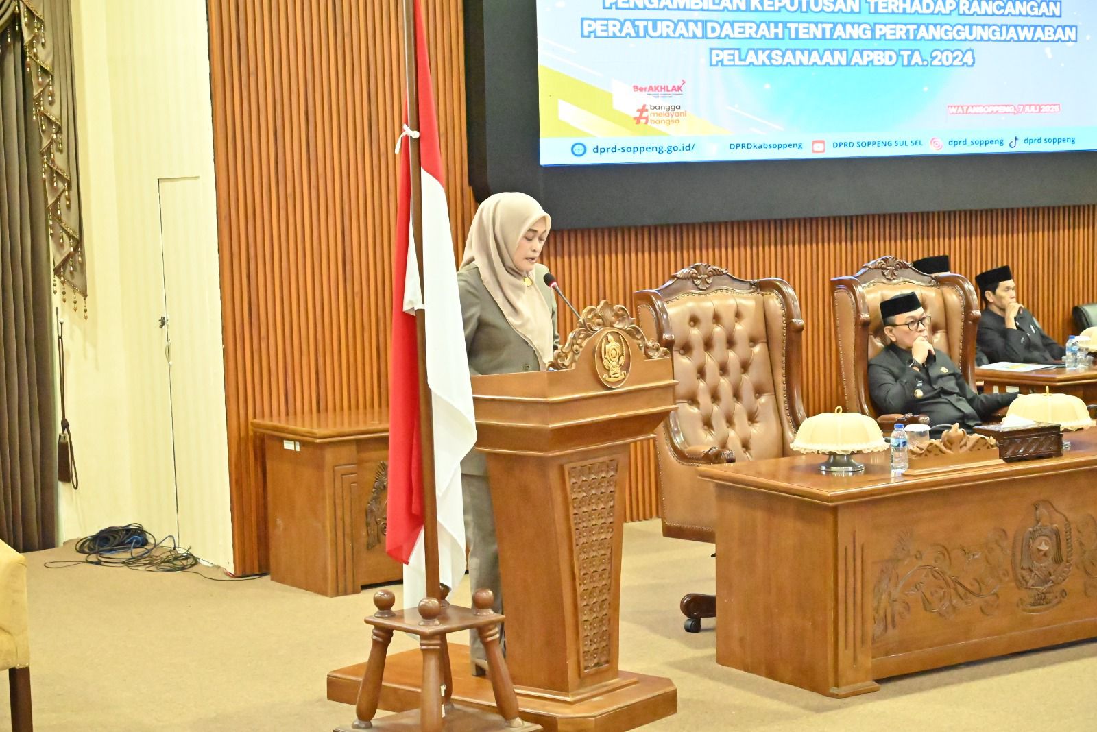 Dalam laporannya, Juru Bicara Badan Anggaran DPRD, Hj. Andi Wahda, S.E., menyampaikan hasil pembahasan Ranperda yang memuat rekomendasi persetujuan untuk ditetapkan sebagai Peraturan Daerah. Laporan tersebut memuat sejumlah catatan strategis yang harus diperhatikan pemerintah daerah, termasuk penguatan pengawasan internal, percepatan realisasi program prioritas, dan optimalisasi Pendapatan Asli Daerah (PAD). Seluruh fraksi di DPRD menyatakan persetujuan terhadap laporan tersebut dalam forum paripurna.