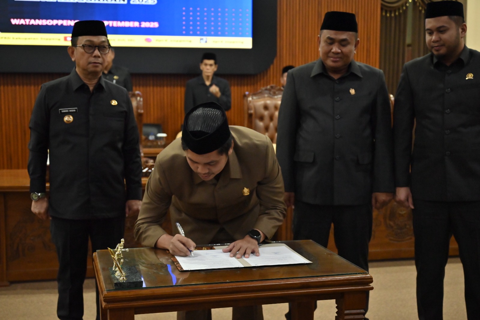Setelah laporan Banggar diterima, Ketua DPRD meminta persetujuan anggota dewan dan secara aklamasi rapat paripurna menyatakan “setuju”. Persetujuan tersebut ditandai dengan penandatanganan Berita Acara Persetujuan Bersama antara DPRD dan Bupati Soppeng