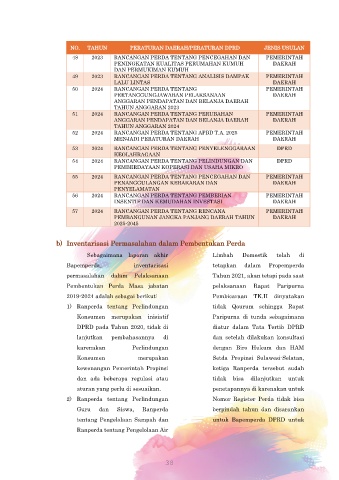 b) Inventarisasi Permasalahan dalam Pembentukan Perda