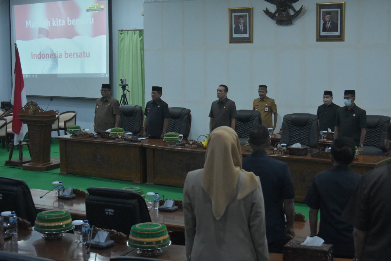 Dalam Sambutannya Bupati Soppeng H.A Kaswadi Razak, SE menyampaikan apresiasi dan ucapan terima kasih yang tinggi kepada pimpinan dan segenap anggota dewan yang terhormat yang memberikan dukungan dan kerja samanya dalam melaksanakan berbagai program dan kegiatan pembangunan di Kabupaten Soppeng. Walaupun saat ini keadaan sudah jauh lebih baik dimana kasus Covid-19 sudah melanda. Kenyataan harus kita hadapi bersama dan menjadi cambuk untuk bangkit dari keterpurukan ekonomi akibat dari pandemi. Marilah kita meneguhkan persatuan dan kesatuan, kini saatnya kita berdiri bersama, bergandengan tangan, dalam semangat Yassisoppengi.
