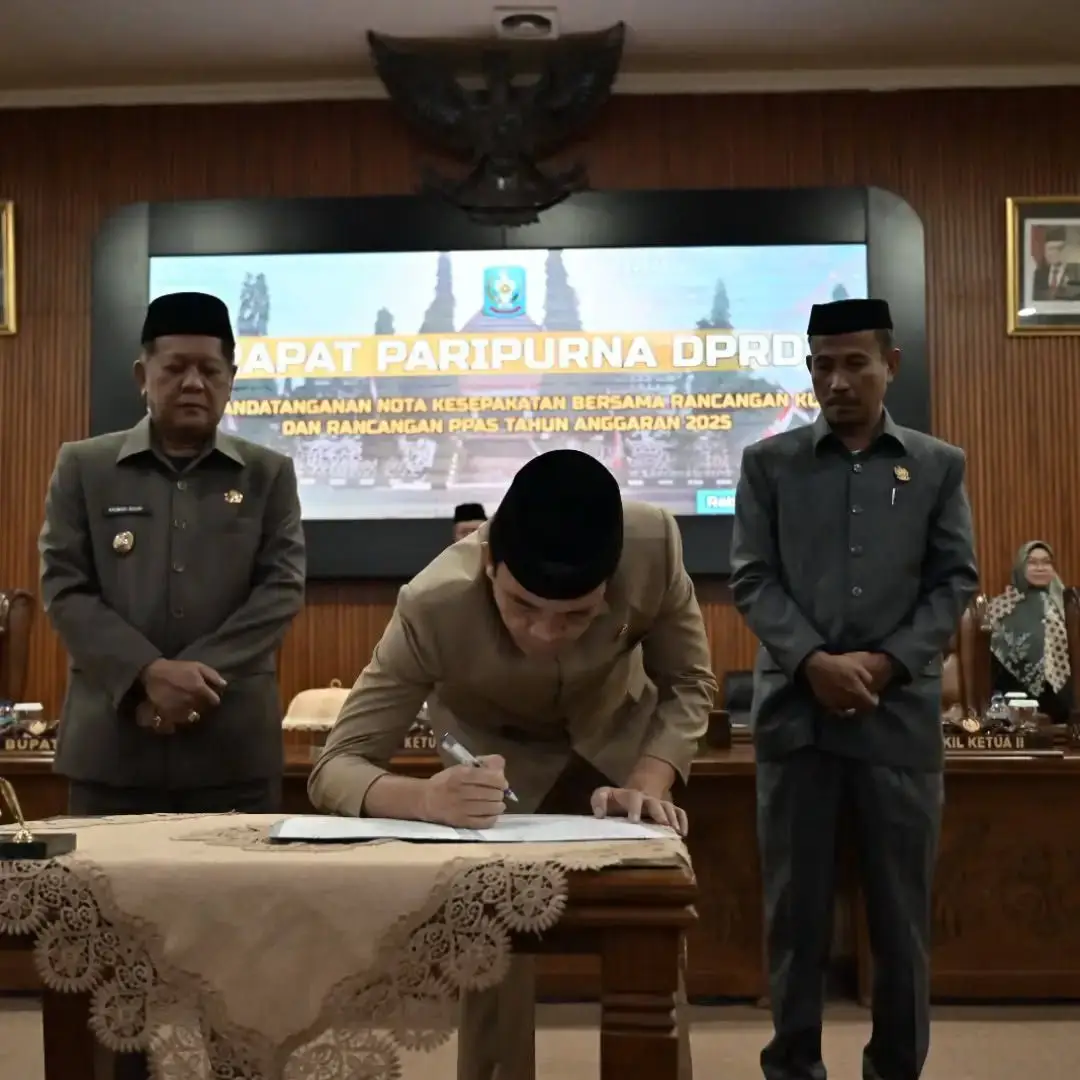 Ia menekankan pentingnya kolaborasi antara eksekutif dan legislatif serta pihak terkait dalam pembangunan daerah. Bupati juga menginstruksikan Tim Anggaran Pemerintah Daerah untuk segera berkoordinasi dengan seluruh Satuan Kerja Perangkat Daerah (SKPD) dalam menyusun Rancangan APBD Tahun Anggaran 2025 berdasarkan program kegiatan dan pagu anggaran yang telah ditetapkan.