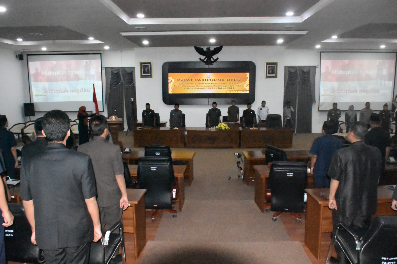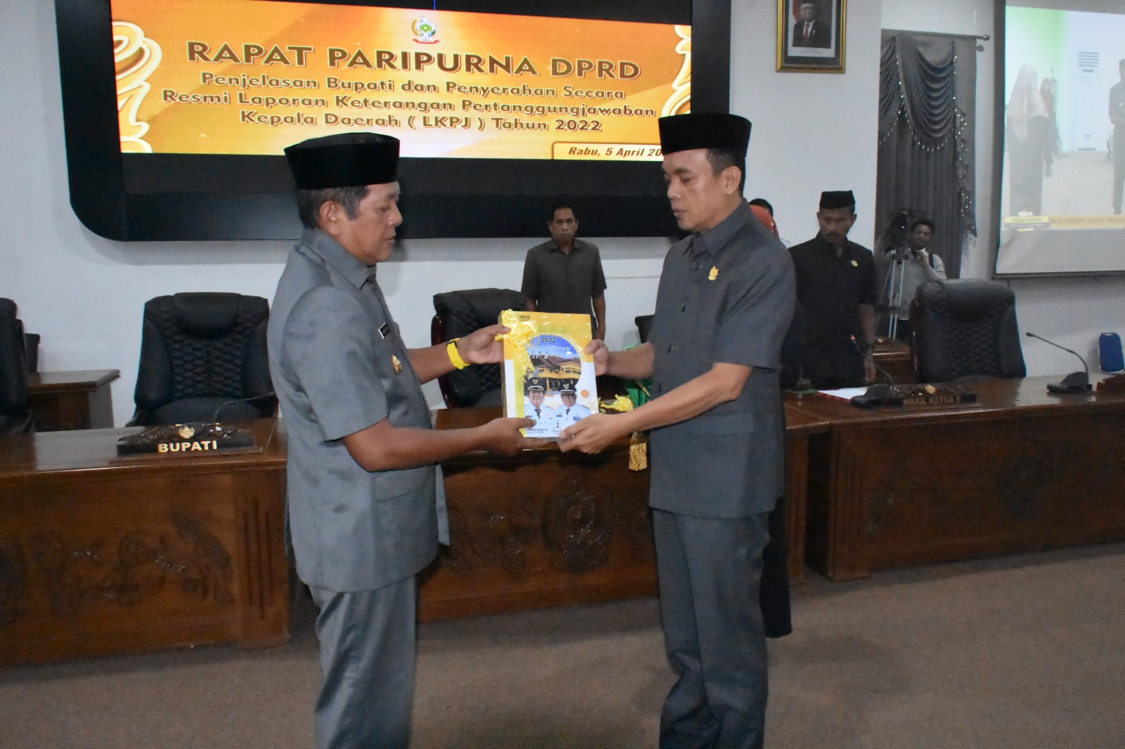 Ketua DPRD menerima Laporan Keterangan Pertanggungjawaban Kepala Daerah (LKPJ) Tahun 2022 yang diserahkan oleh Bupati Soppeng di Ruang Rapat Paripurna DPRD Soppeng pada Rabu, 5/4/2022. Penyerahan LKPJ sesuai ketentuan yang diatur dalam Undang-Undang Nomor 23 Tahun 2014 tentang Pemerintahan Daerah dan Peraturan Menteri Dalam Negeri Nomor 18 Tahun 2020 tentang Peraturan Pelaksanaan Peraturan Pemerintah Nomor 13 Tahun 2019 tentang Laporan dan Evaluasi Penyelenggaraan Pemerintahan Daerah, Bahwa Kepala Daerah Menyampaikan Laporan Keterangan Pertanggungjawaban kepada DPRD yang dilakukan satu kali dalam satu tahun paling lambat tiga bulan setelah tahun anggaran berakhir.